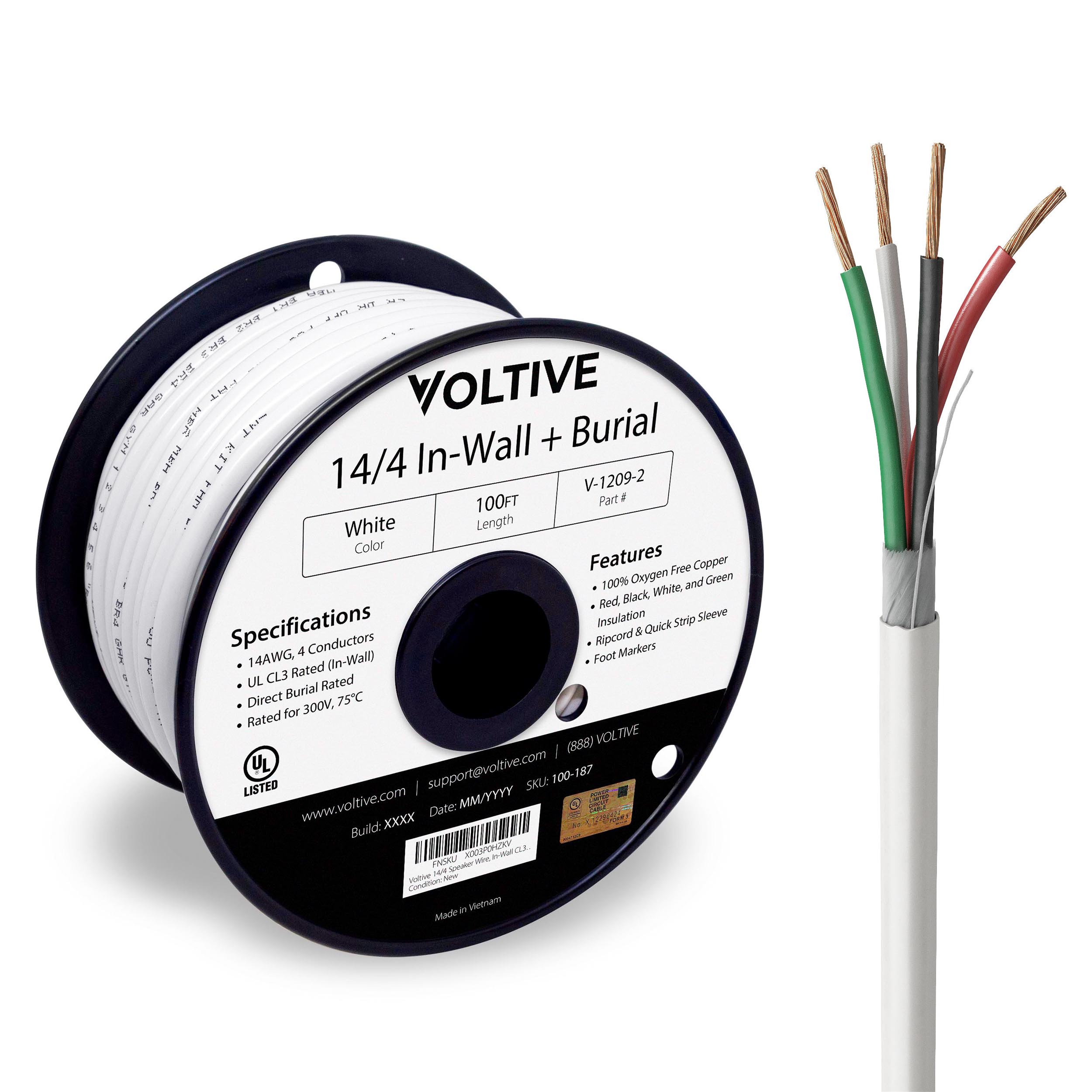 Premium 14 gauge 4 conductor speaker cable, featuring 105 strand oxygen-free copper (OFC) conductors and a super-luxe outer jacket. General Purpose (CL3) fire safety rating for installation in walls and risers (between floors) in residential buildings and in walls in commercial buildings. Direct Burial rating for underground installation without conduit. UL Listed. Use for speakers, LED lighting, DC power, or any suitable low voltage application.