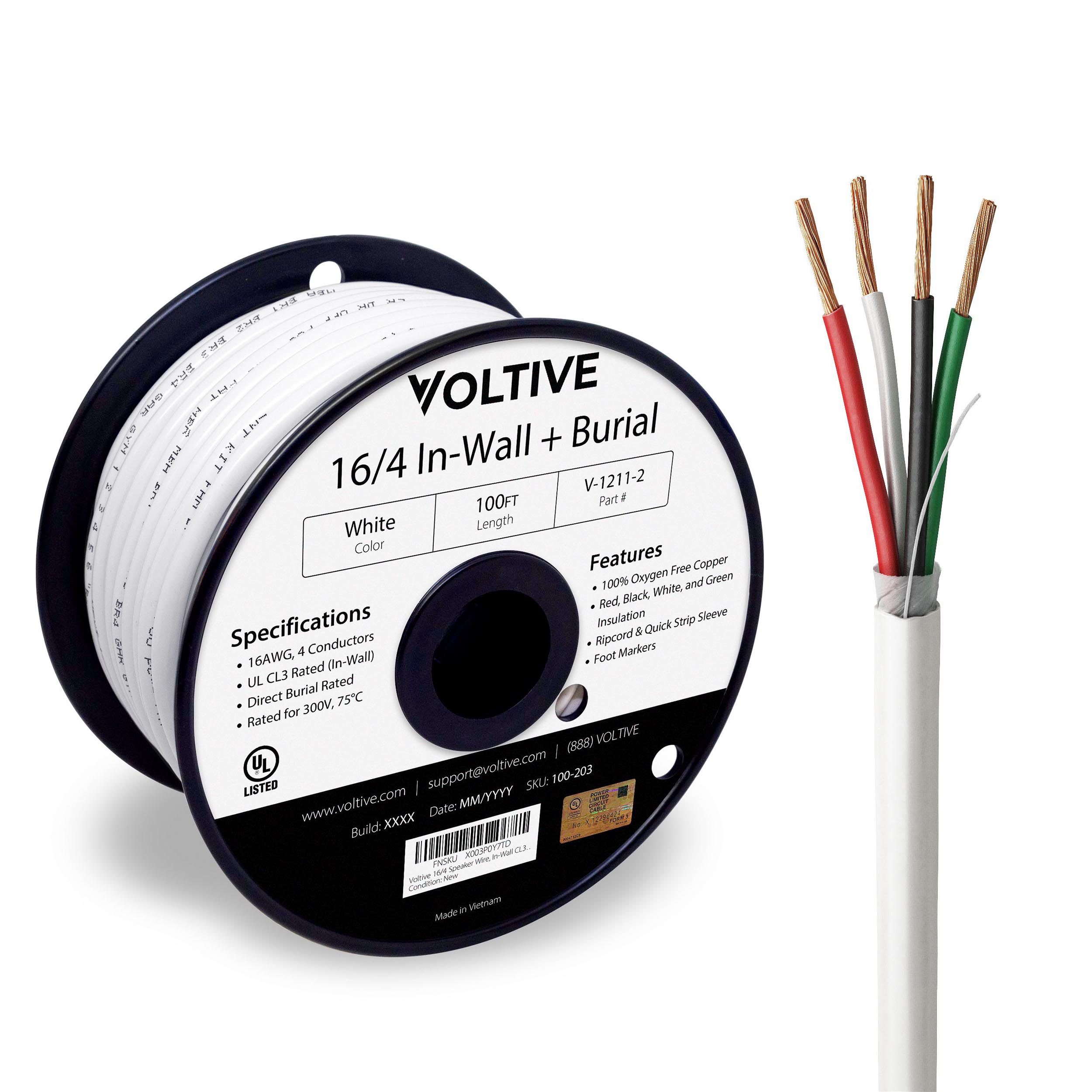 Premium 16 gauge 4 conductor speaker cable, featuring 65 strand oxygen-free copper (OFC) conductors and a super-luxe outer jacket. General Purpose (CL3) fire safety rating for installation in walls and risers (between floors) in residential buildings and in walls in commercial buildings. Direct Burial rating for underground installation without conduit. UL Listed. Use for speakers, LED lighting, DC power, or any suitable low voltage application.