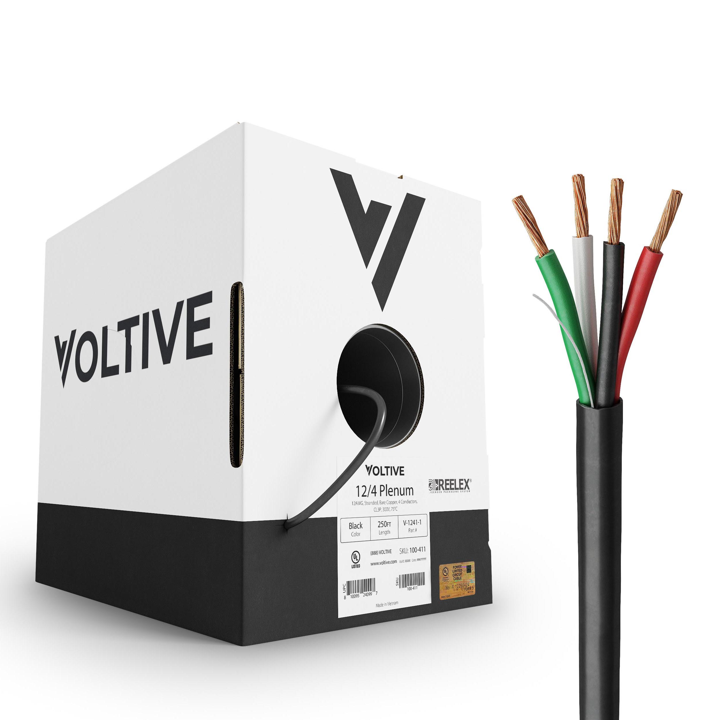 12 gauge 4 conductor speaker cable, featuring 65 strand oxygen-free copper (OFC) conductors. Plenum (CL3P) fire safety rating for installation in walls, risers (between floors), and plenums in both residential and commercial applications. UL Listed. Use for speakers, DC power, or any suitable low voltage application.